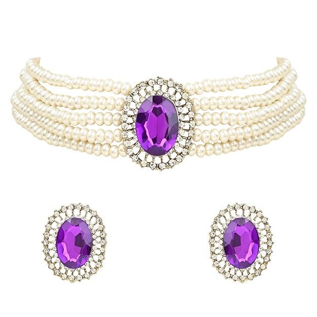 Choker Necklace in Gold Plated Traditional Stone Studded Pearl Choker Necklace Jewellery Set for Women and Girls