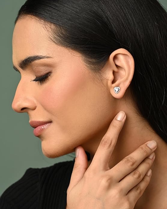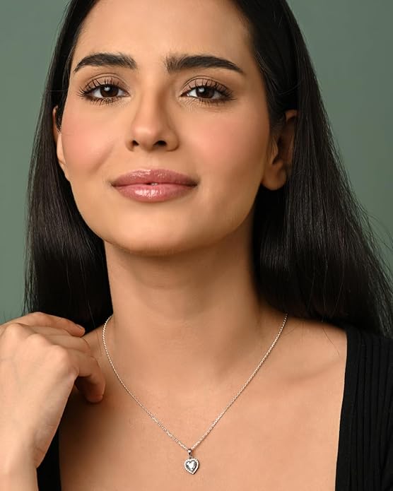 This Diamond Pendant Set with Earrings features the elegant Zilvia heart solitaire pendant and matching stud earrings crafted from 925 pure sterling silver. Set with finest quality Swiss cubic zirconia that sparkles like real diamonds, the complete set includes an 18-inch cable chain, perfect for festive celebrations, engagements, weddings, anniversaries, or eternity gifting.