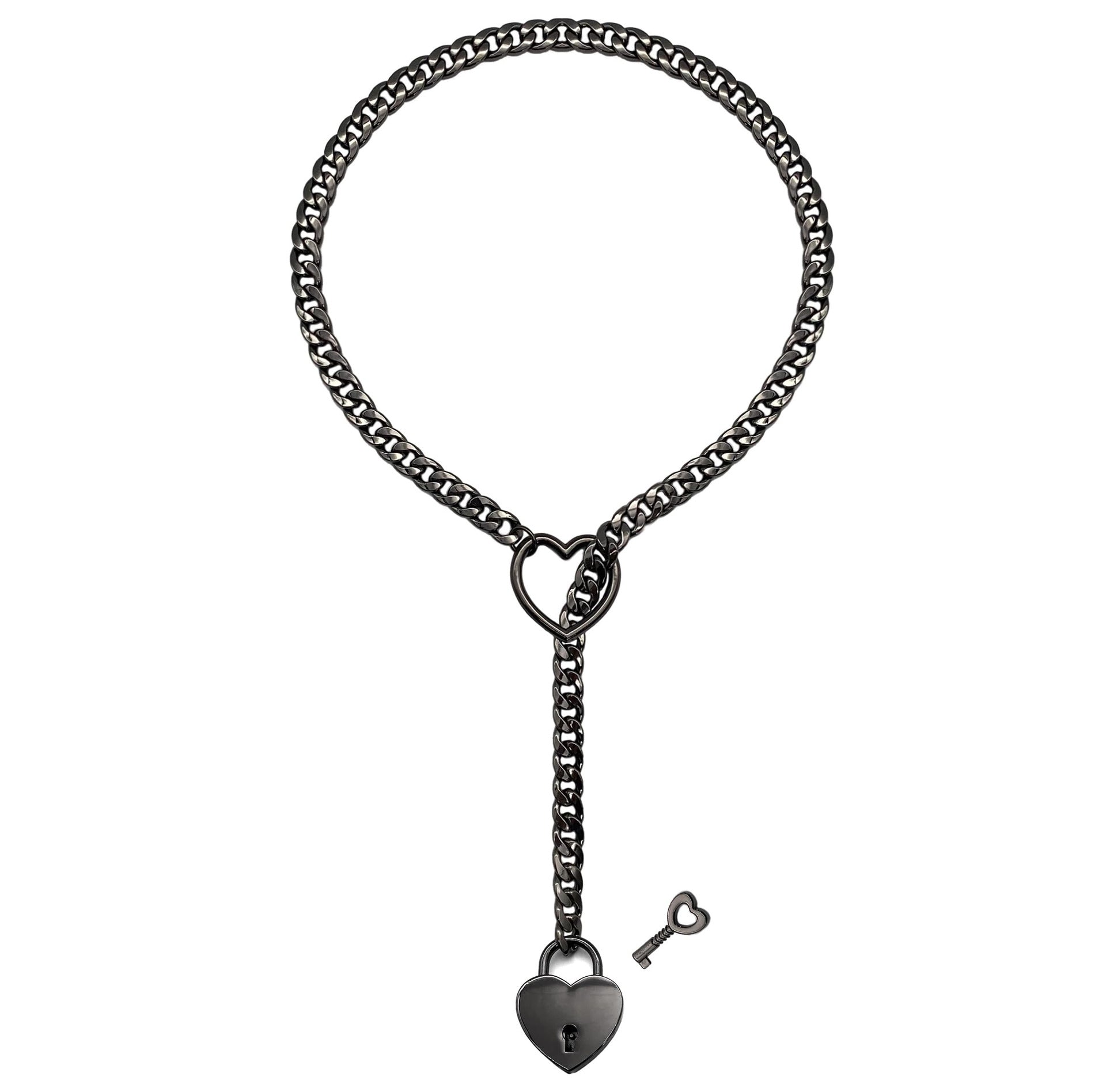 Fashion Jewelry 2026 New Slip Chain Necklace Heart O-Ring Rock Cuban Long Necklace Adjustable Heart Shaped Lock Core With Key