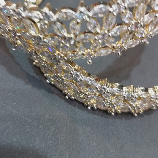 Gold-Plated White American Diamond studded Floral Shaped Bangles Jewellery Set (Set Of 2)