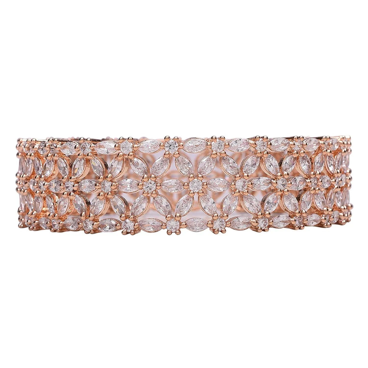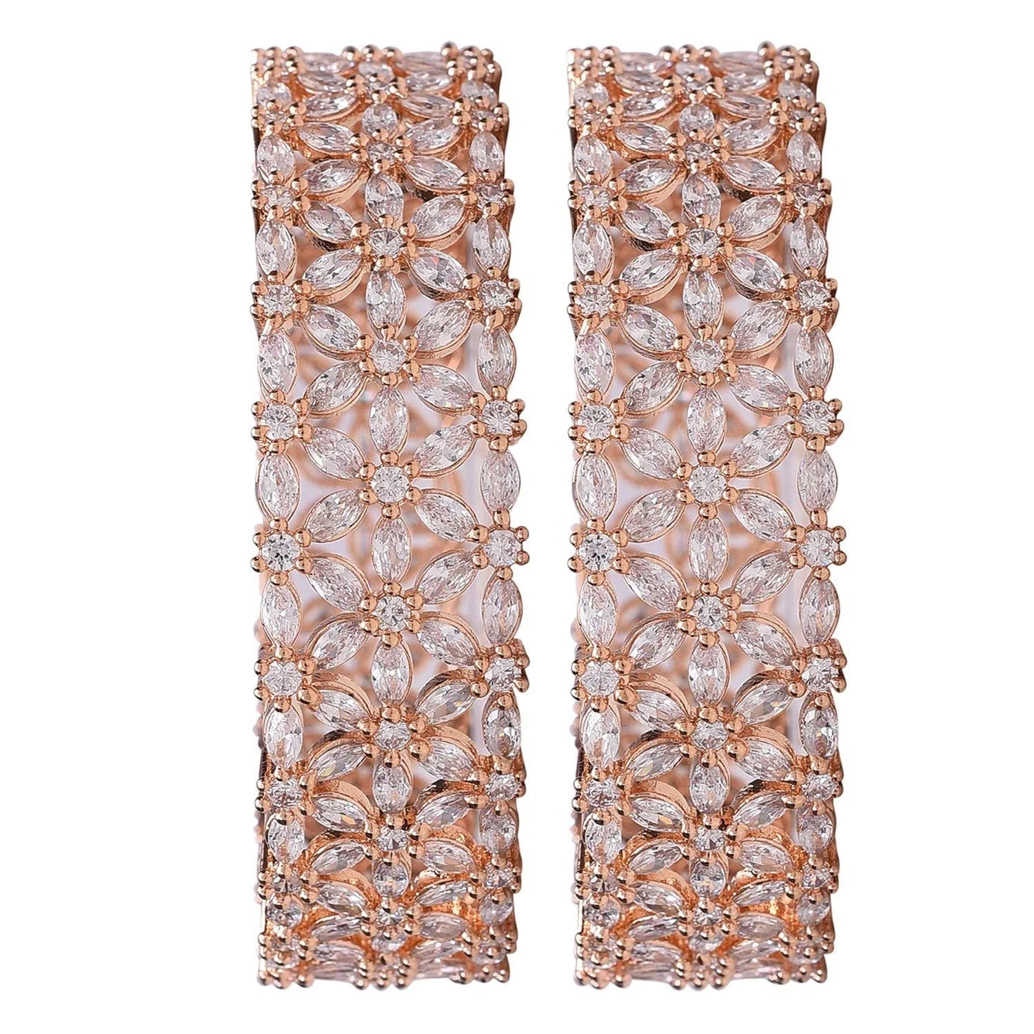 Beautiful CZ Studded Rose Gold Plated Traditional White Heavy Kada Bangles Set for Women