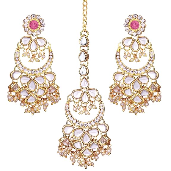 • Includes 1 pair of statement earrings and 1 maang tikka.