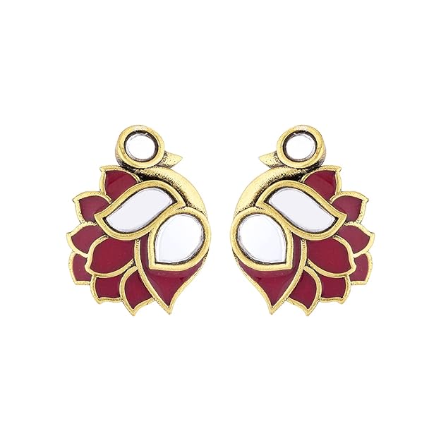 Make a striking festive statement with these Large Silver Stud Earrings featuring intricate bird motif traditional design. Crafted by Voylla for vibrant celebrations, they add bold elegance and cultural flair to any ethnic or party look.