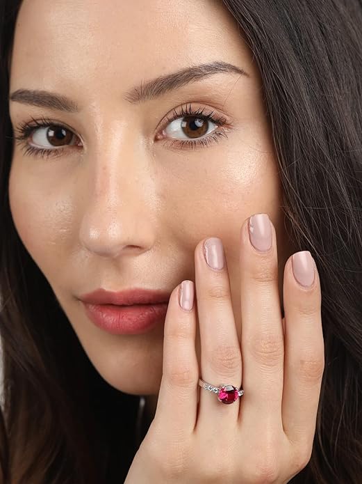 This red heart silver ring is crafted from pure 925 sterling silver and features a striking heart inspired stone design with an adjustable band. Accented with brilliant cubic zirconia, it offers a bold yet elegant look for special occasions.