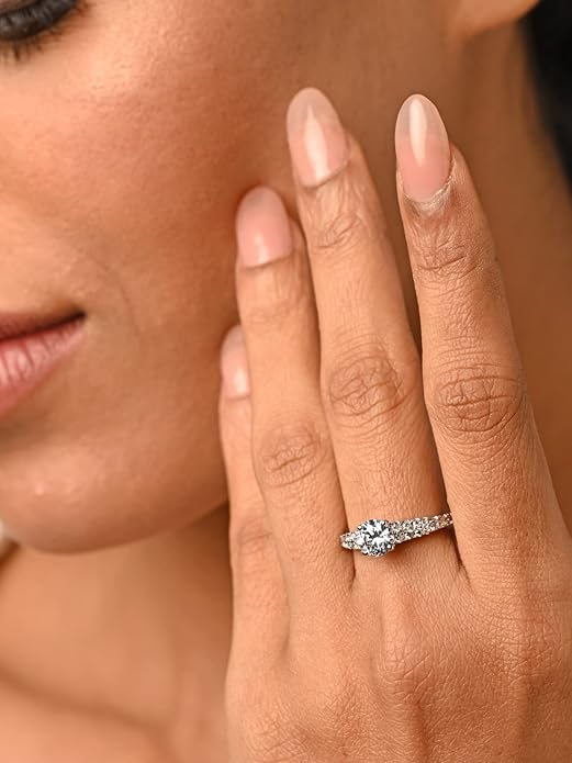 These silver diamond rings are crafted from pure 925 sterling silver and feature a classic solitaire design with an adjustable band. Finished with brilliant cubic zirconia, they offer an elegant diamond like appearance for special occasions.