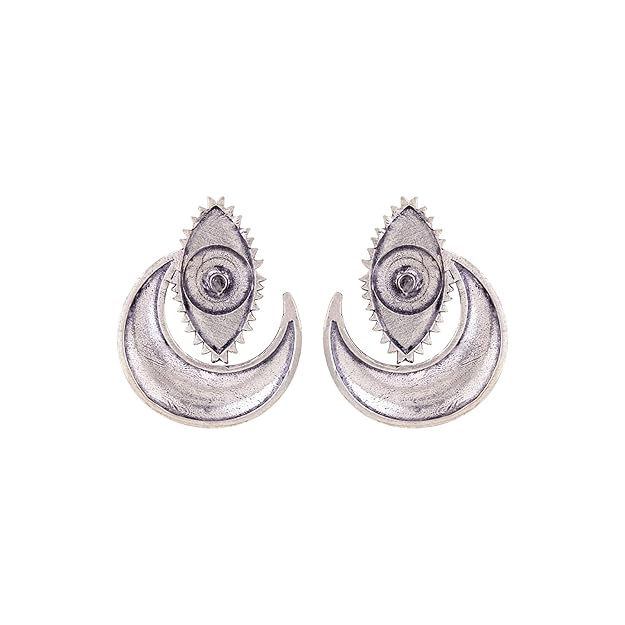 Protect and style with these Silver Studs for Women featuring evil eye crescent oxidized design. Perfect birthday gift or daily essential from Voylla's designer collection bringing positive energy to every occasion.