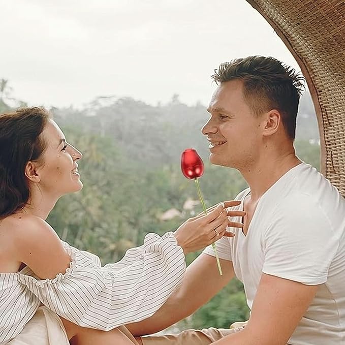 • Unique red metal rose with secret compartment for ring storage and surprise reveals.